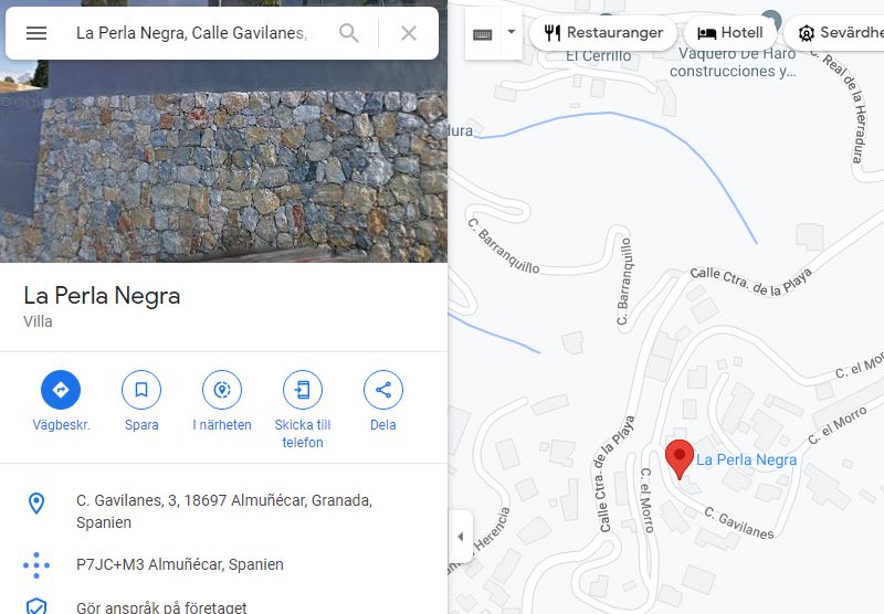 För att hitta till La Perla Negra, öppna Google Maps och sök på La Perla Negra Almunecar.