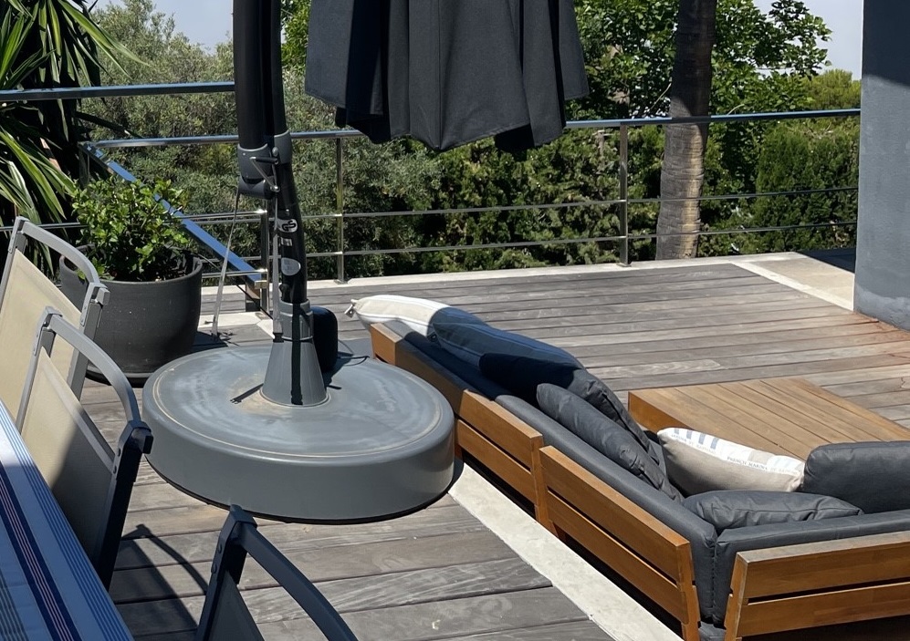Ifall inte utemöbler är ute så står de i garaget. Dynor till utemöbler finns i gästrummet vid trappan ner till spelrummet.
