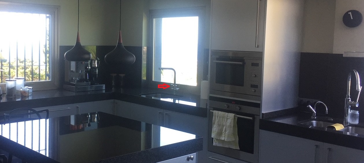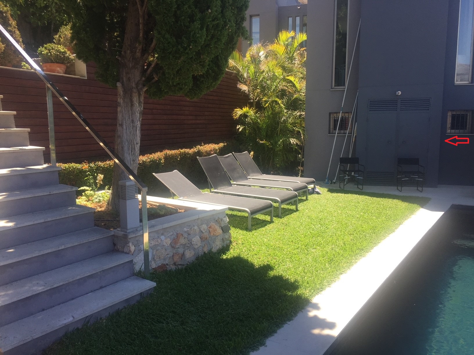 Här öppnar man pooltäcket. Vrid nyckeln till vänster för att öppna och höger för att stänga. Är det varmt på dagarna så blir det skönare att bada om täcket är av även på nätterna.