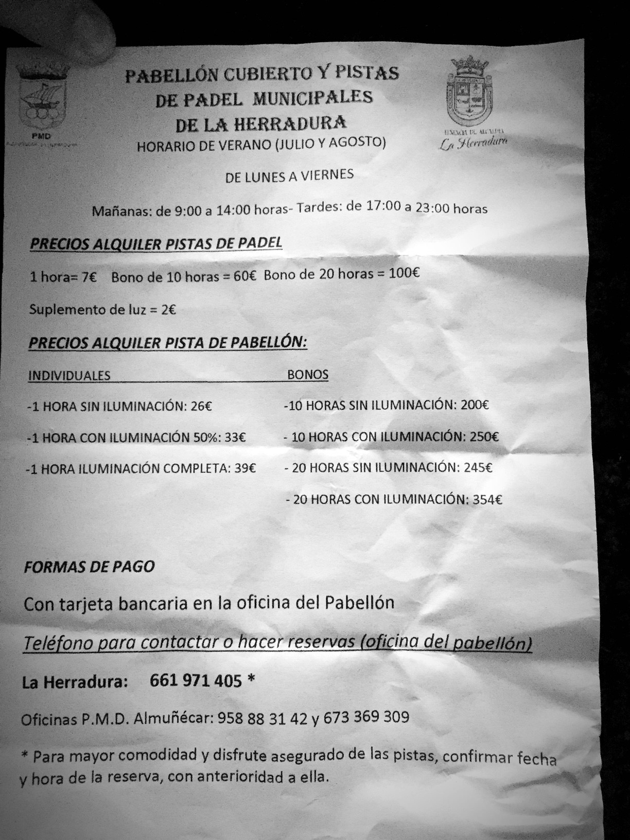... banan når ni på tel. +34 661 971 405. De här banorna är billigare än Ruths. Det finns rack och bollar i förrådet bakom köket på bottenvåningen.